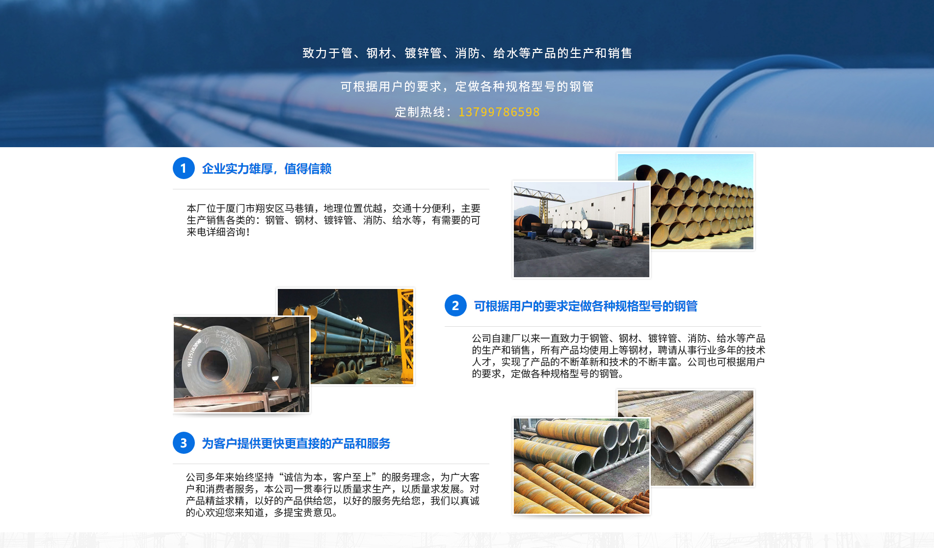 廈門(mén)方圓澤金屬材料有限公司主要生產(chǎn)銷(xiāo)售各類(lèi)銀澤的:鋼管、鋼材、鍍鋅管、消防、給水等,產(chǎn)品被廣泛應(yīng)用于天然氣、石油、化工、電力、熱力管網(wǎng)、水源等長(zhǎng)距離輸送管道等,公司建立起了產(chǎn)品售前、售后服務(wù)規(guī)范,全過(guò)程滿足顧客要求,使我們的產(chǎn)品和服務(wù)深得顧客的信賴,與顧客建立起了長(zhǎng)期合作互利關(guān)系。